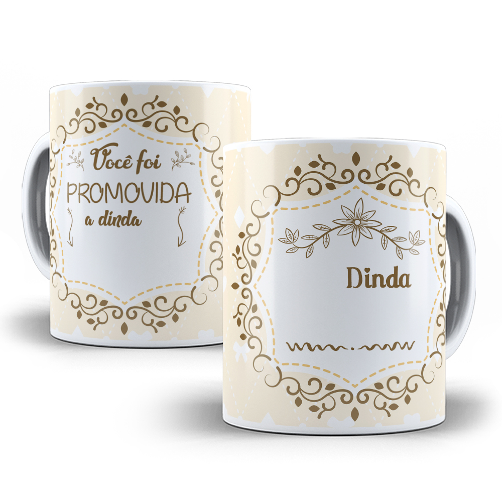 Kit 4 Canecas de Porcelana Personalizadas Dindo e Dinda - Modelo: 3